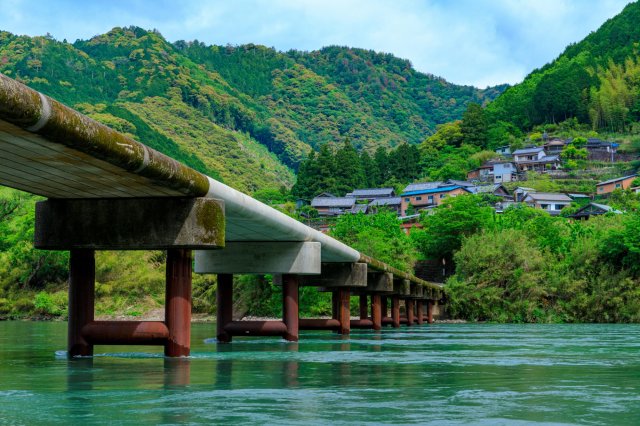 Lokasi aliran sungai Nagara berjarak 1 km sebelah utara Lobi kota Mino.